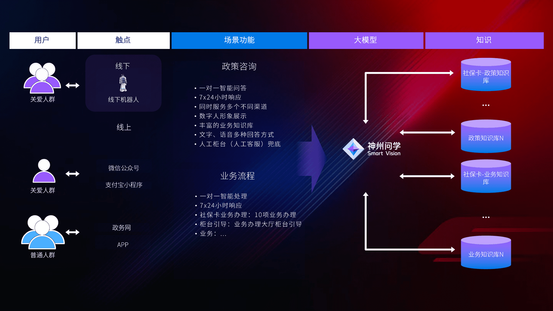 • 线上线下全覆盖:线上提供微信公众号、、支付宝小程序、、政务网、、、、app多种渠道,,与线下机器人形成完整服务体系。。。。